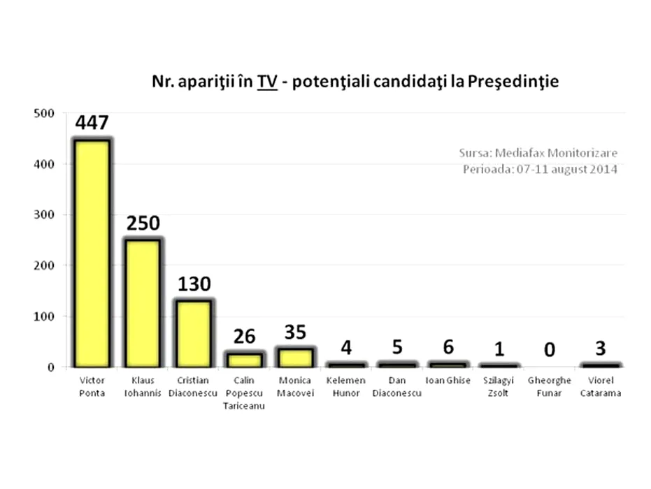 Analiză Mediafax Monitorizare: Ponta conduce detașat topul aparițiilor în media, urmat de Iohannis și Diaconescu