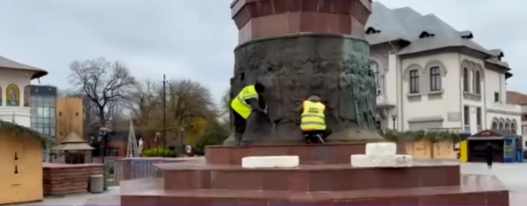 Angajați ai Primăriei din Focșani, SURPRINȘI când curățau un monument din bronz cu perii de sârmă. Ce au pățit angajații
