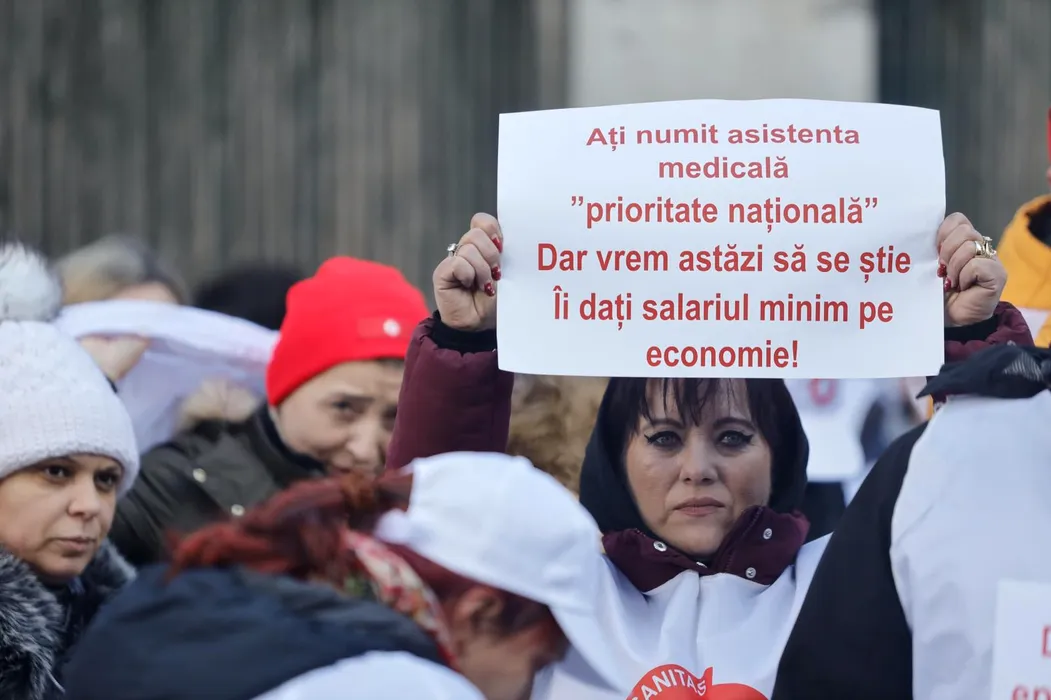 Angajații din SĂNĂTATE au protestat în fața Ministerului Muncii. Asistent medical: „Eroul din pandemie a fost îngenuncheat”