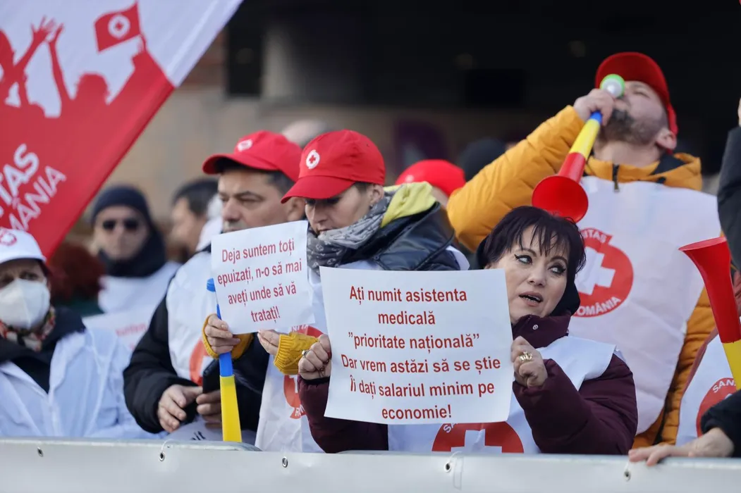 Angajații din SĂNĂTATE au protestat în fața Ministerului Muncii. Asistent medical: „Eroul din pandemie a fost îngenuncheat”