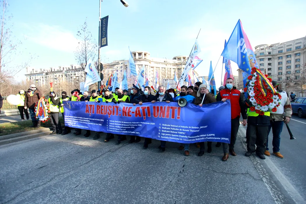 FOTO- VIDEO | Protest în fața Guvernului și Parlamentului. Angajați din Sănătate, Poliție și sectorul public cer salarii mai mari
