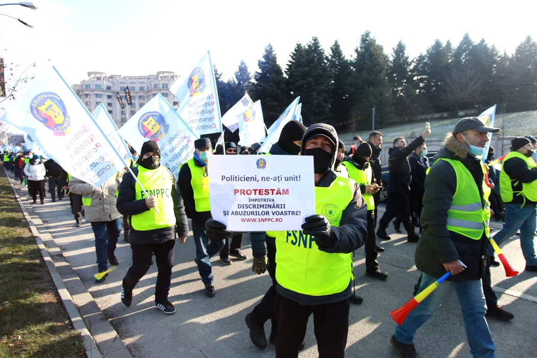 FOTO- VIDEO | Protest în fața Guvernului și Parlamentului. Angajați din Sănătate, Poliție și sectorul public cer salarii mai mari