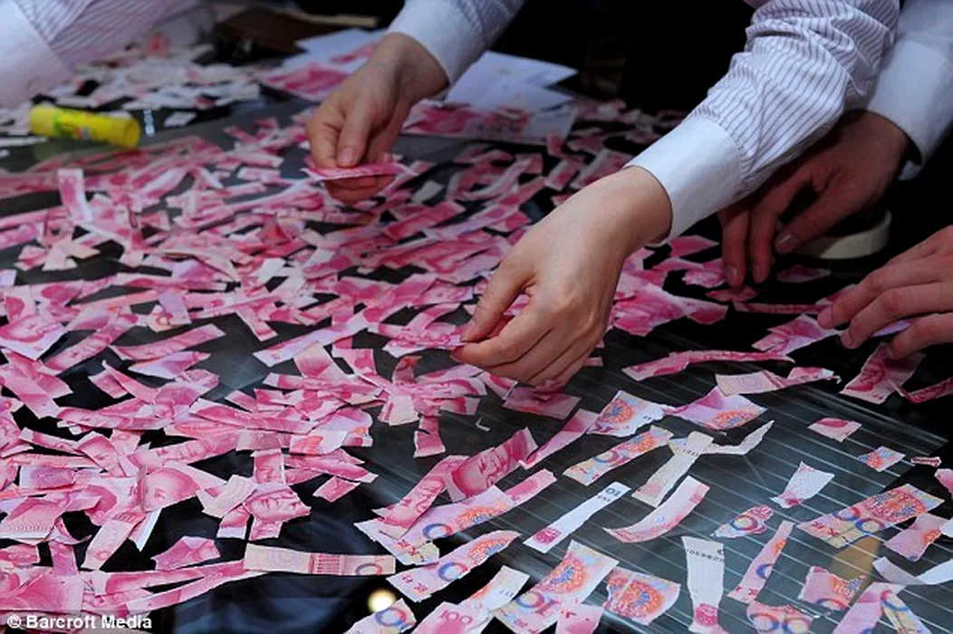 Angajații unei bănci au încercat să lipească 6.000 de euro după ce o femeie i-a rupt în bucăți. FOTO