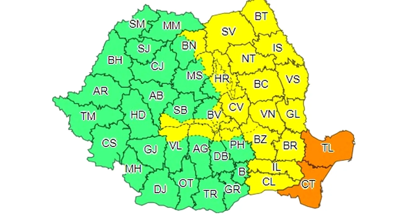 ANM: Cod galben de ploi torențiale pentru 22 de județe