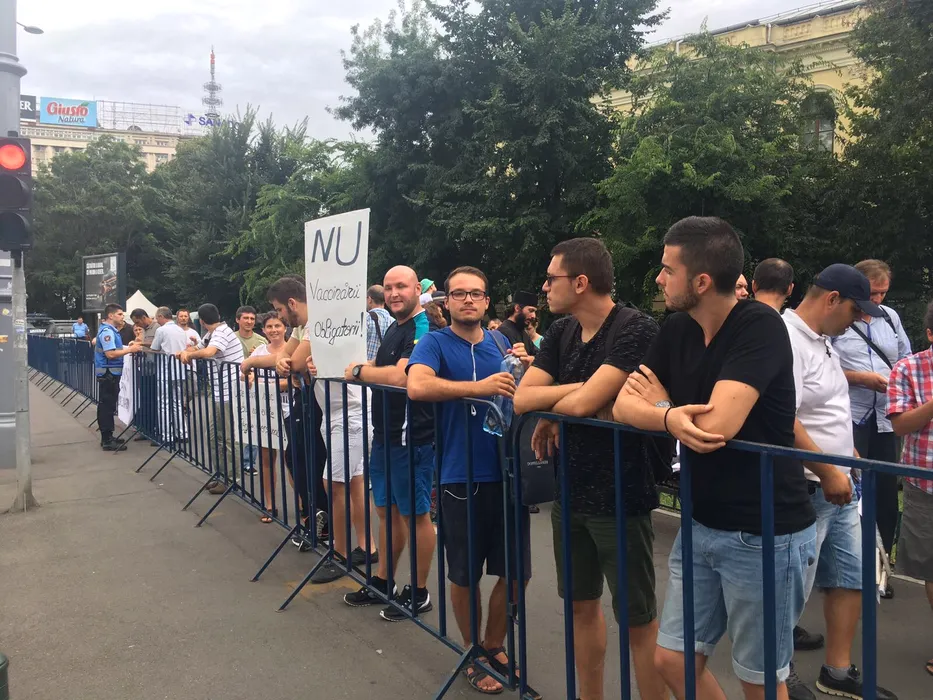 Aproape 200 de anti-vacciniști au protestat la Guvern. „Cum să pui formaldehidă într-un vaccin pentru copii? Nu vedem asta decât în borcanele de la Muzeul Antipa”