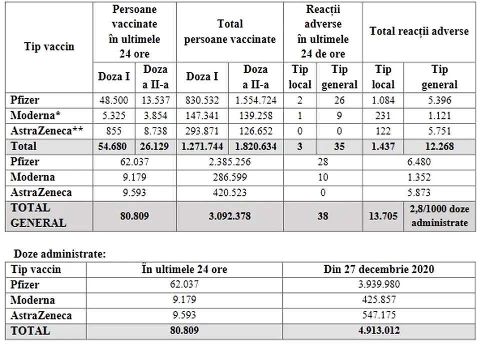 Aproape 81.000 de persoane, vaccinate anti-COVID în ultimele 24 de ore. Cele mai multe au primit serul Pfizer