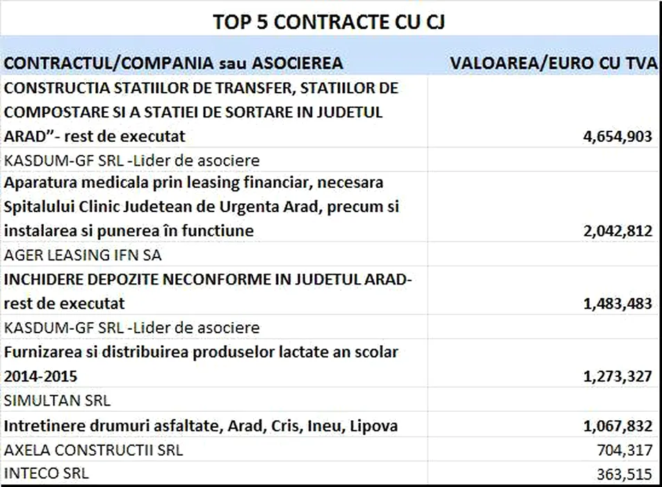 ARAD. Unde au mers banii publici în 2014. Topul firmelor care au contracte locale cu statul