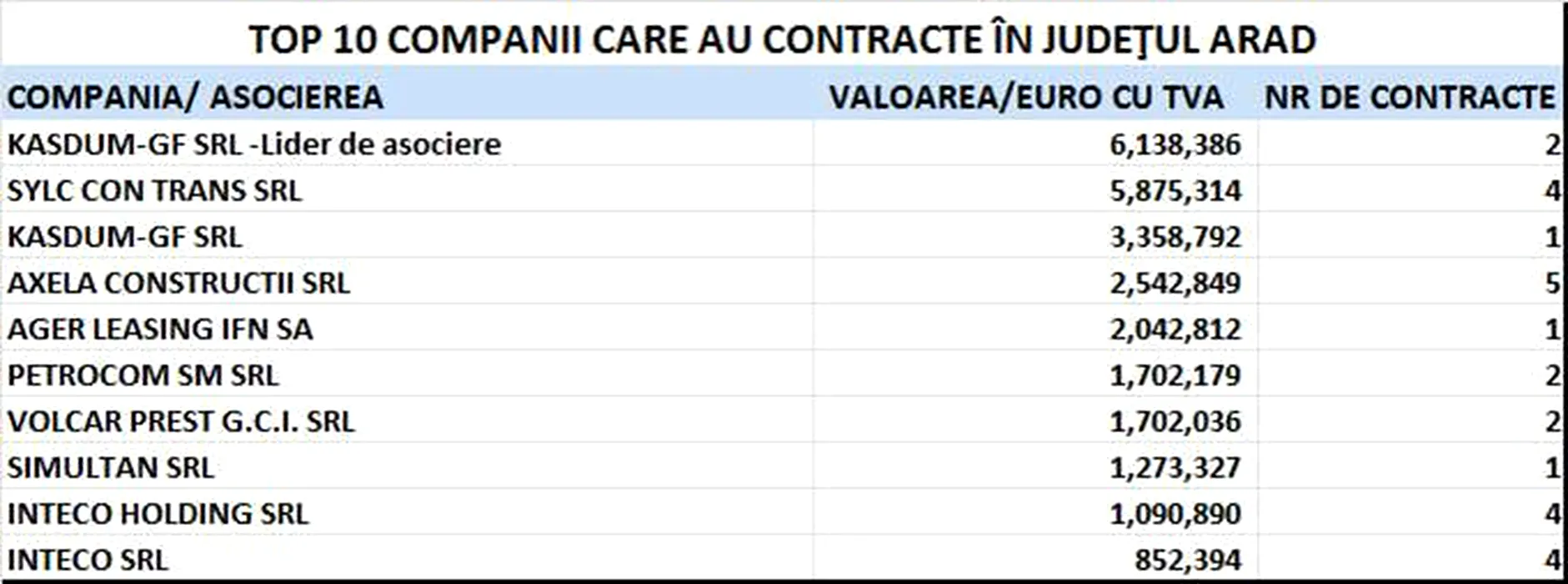 ARAD. Unde au mers banii publici în 2014. Topul firmelor care au contracte locale cu statul