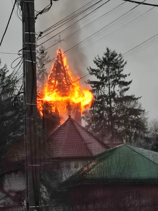Arde biserica din Luncani. În Bacău, pompierii intervin pentru stingerea incendiului