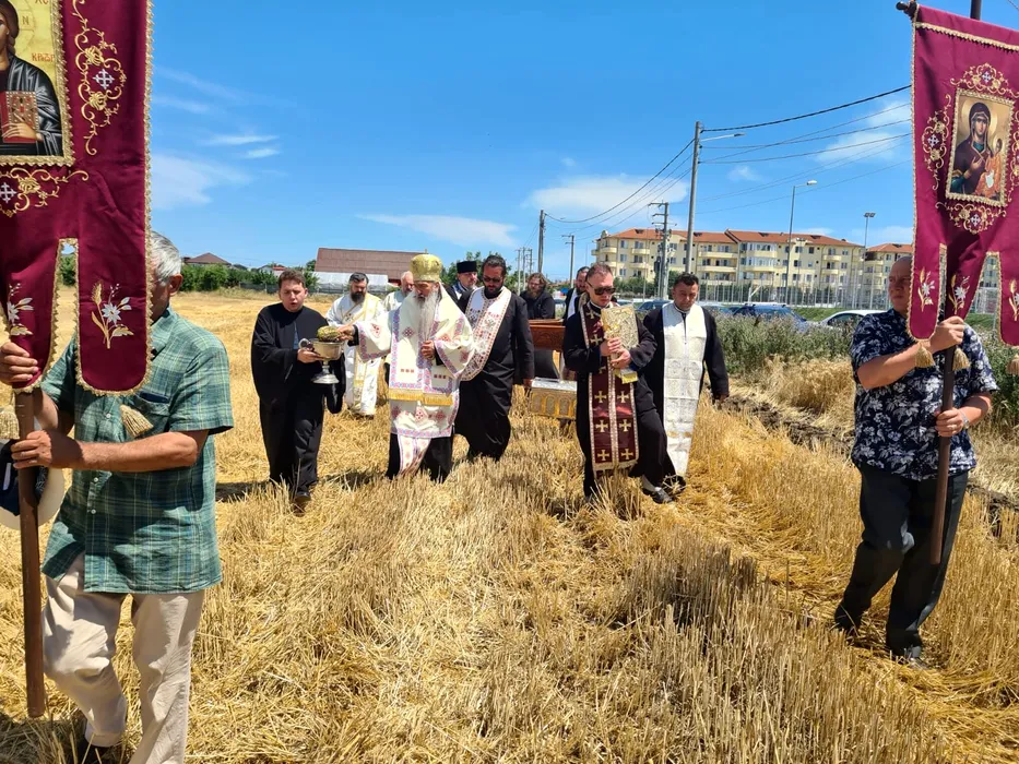 FOTO | Arhiepiscopia Tomisului a continuat campania de rugăciuni pentru ploaie. În ce localitate a mers IPS Teodosie și ce racle au fost aduse pe câmp