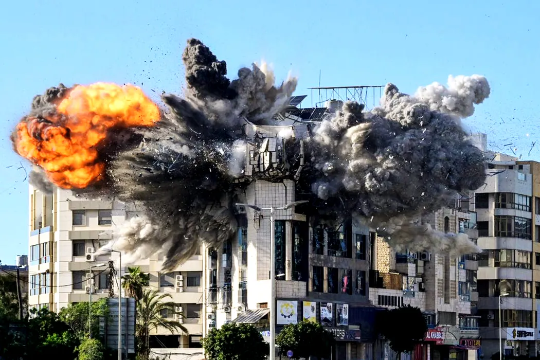 31 March 2026, Lebanon, Beirut: Smoke and fire come out of a building that was targeted by an Israeli air strike on the edge of Beirut southern suburb and close to the Iranian embassy. Photo: Marwan Naamani/dpa