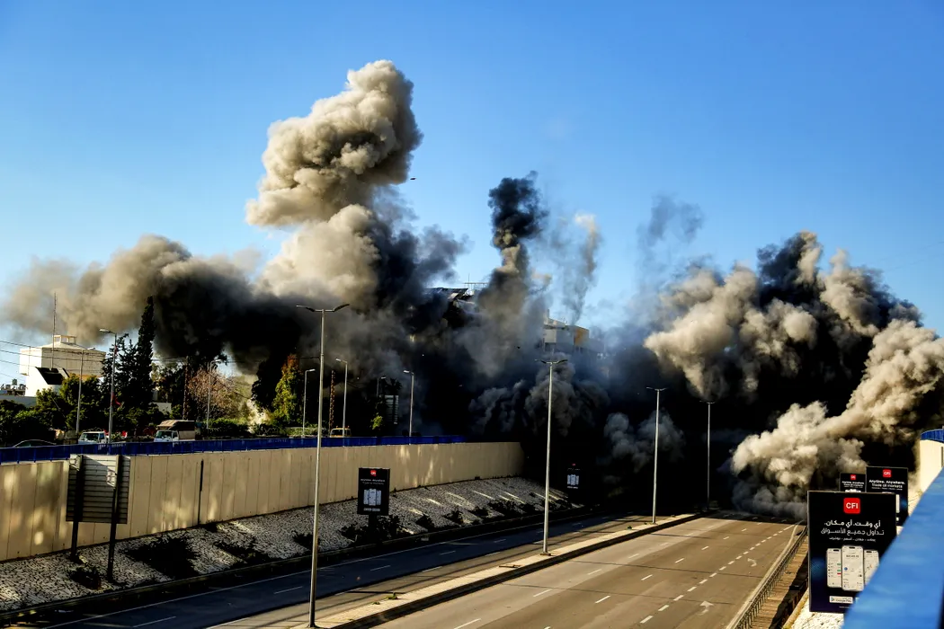 31 March 2026, Lebanon, Beirut: Smoke engulfs the highway that leads to Beirut International airport, after a building was targeted by an Israeli air strike on the edge of Beirut southern suburb and close to the Iranian embassy. Photo: Marwan Naamani/dpa