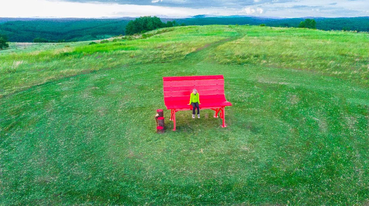 Așa arată cea mai mare bancă de lemn din România, înaltă de aproape trei metri. Face parte dintr-o rețea internațională de promovare a turismului