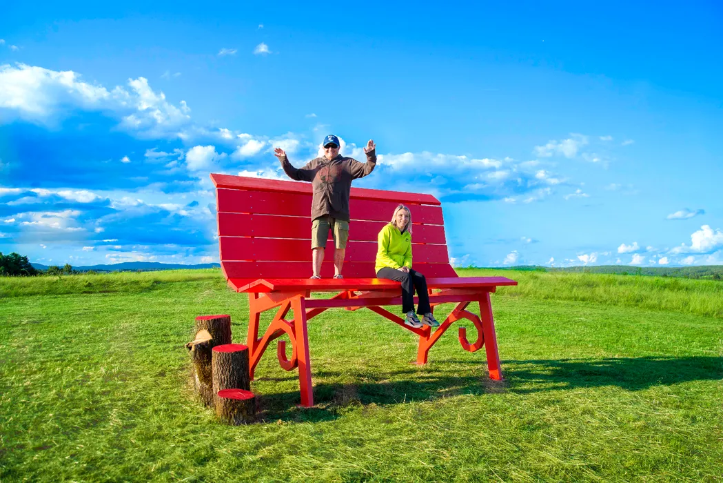 Așa arată cea mai mare bancă de lemn din România, înaltă de aproape trei metri. Face parte dintr-o rețea internațională de promovare a turismului