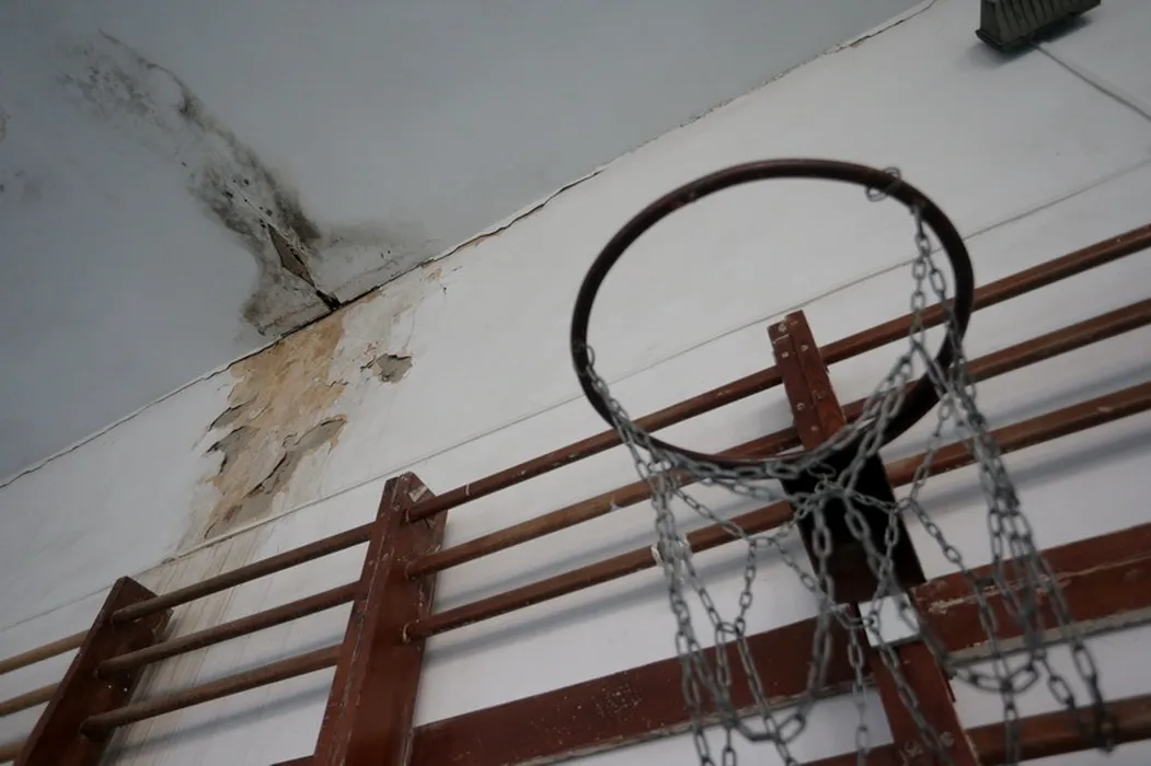 Așa arată sala de sport a unei școli din Timișoara cu sute de elevi. Se poate prăbuși în orice moment. GALERIE FOTO