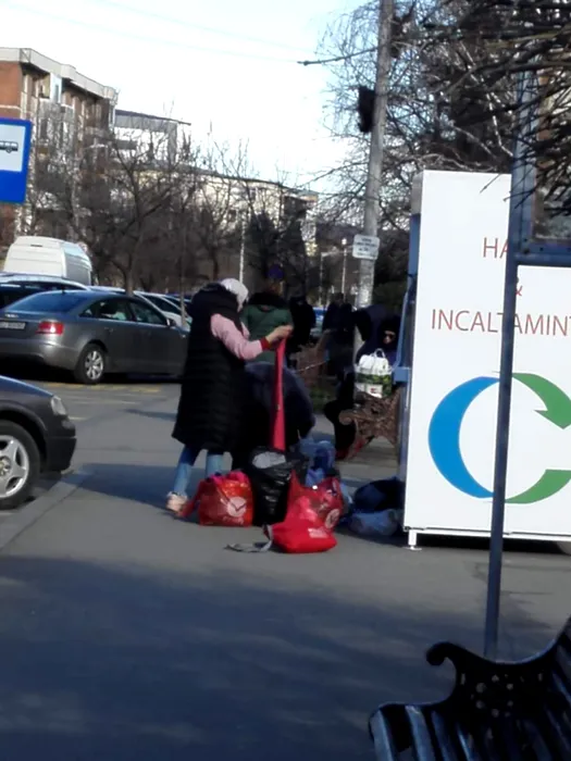 GALERIE FOTO. Haine donate pentru nevoiaşi, furate din container, la Craiova / Hoațele au plecat cu sacoșele pline