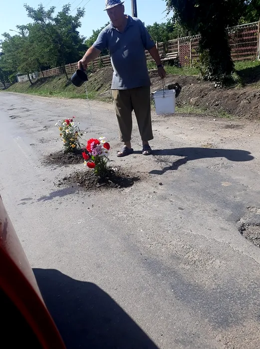 Au plantat flori în gropile din asfalt, sătui de drumurile proaste: Inventiv, în curând majoritatea străzilor vor prinde culoare – FOTO