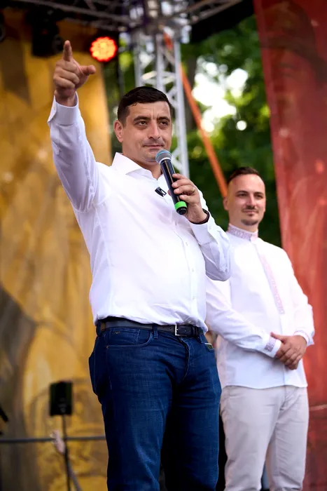 AUR a mărșăluit cu steaguri tricolore/ Simion îi numește „PAPAGALI” pe președinte și premier: „Nu au câștigat nimic anulând alegerile și fraudându-le”