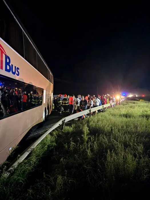 Autocar cu peste 70 de persoane la bord, implicat într-un accident rutier! A fost activat planul roșu de intervenție