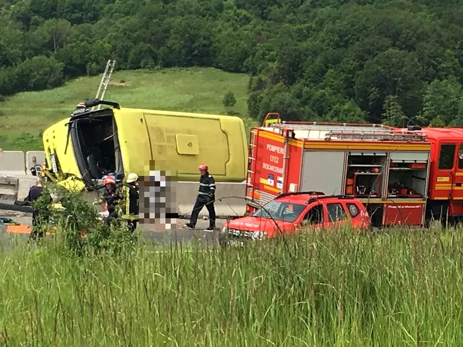 Autocar răsturnat în Brașov: 4 morți, 26 de răniți. COD ROȘU de intervenție