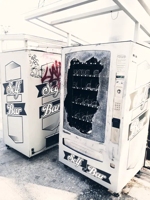 Automatul jefuit luni de protestatari a rămas neclintit. Cioburile sunt încă pe jos