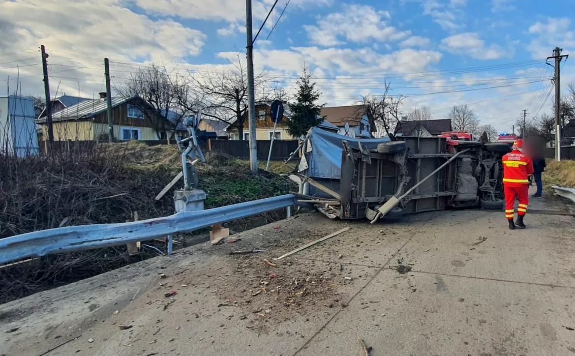FOTO | Autoutilitară lovită de tren, într-o localitate din Suceava. În autovehicul se aflau două persoane