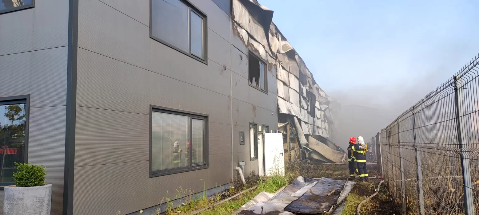 GALERIE FOTO: Avertisment RO-Alert: Incendiu de proporții în Mogoșoaia cu degajări masive de fum. O hală de 2000 metri pătrați arde în integralitate. Intervin 15 autospeciale