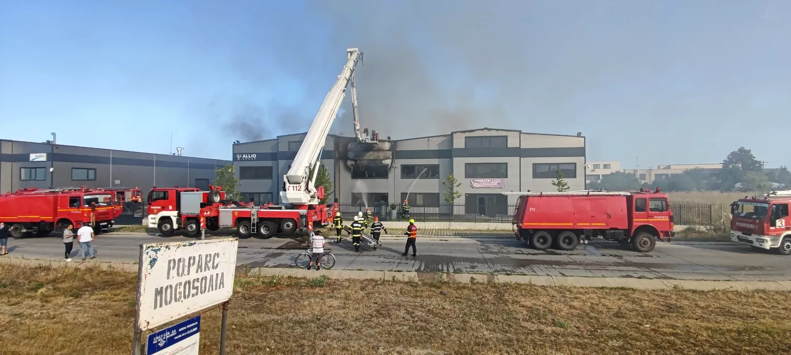Avertisment RO-Alert: Incendiu de proporții în Mogoșoaia cu degajări masive de fum. O hală de 2000 metri pătrați arde în integralitate. Intervin 15 autospeciale