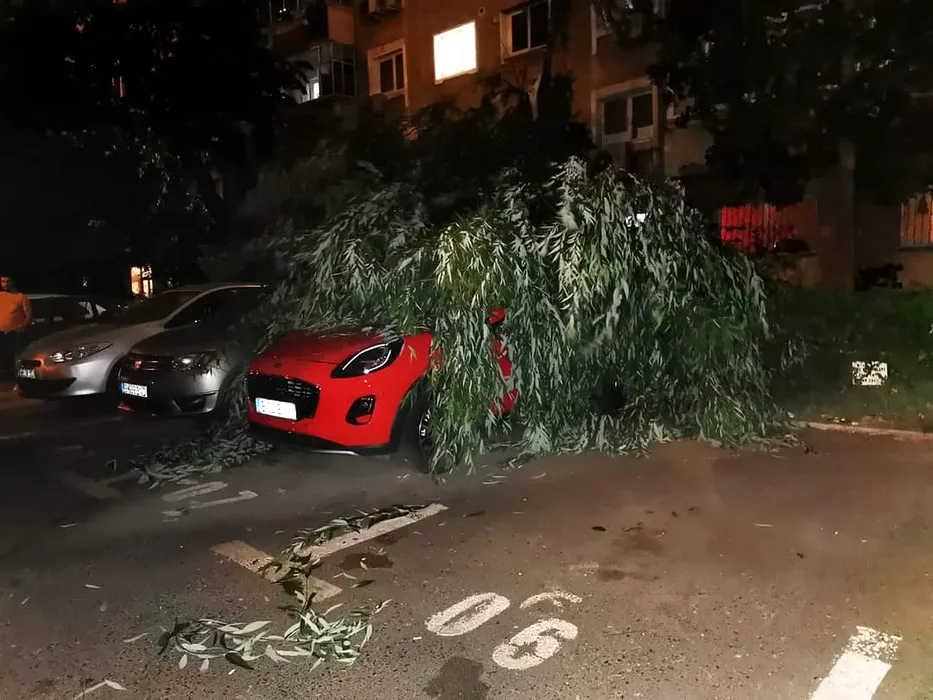 UPDATE. Copaci smulși de vânt, antenă căzută pe două case, două femei rănite. Imaginile ravagiilor făcute de furtuna din București