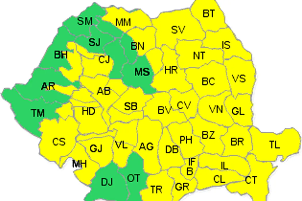 AVERTIZARE METEO – Cod galben de averse, descărcări electrice și intensificari ale vântului în 35 de județe