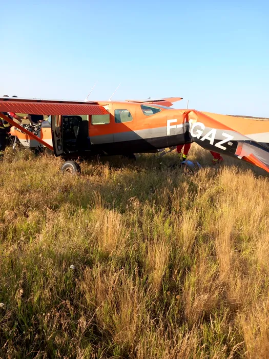FOTO | Un avion civil a aterizat forțat pe aerodromul din Tuzla. La bord se aflau șapte persoane, pilotul și șase parașutiști
