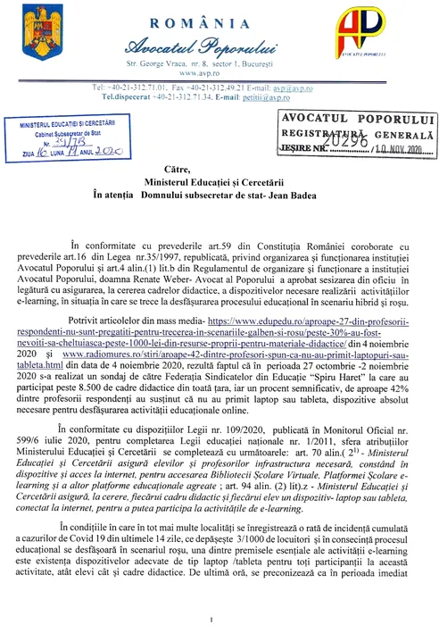 GALERIE FOTO: Avocatul Poporului cere Ministerului Educației să redeschidă școlile! (DOCUMENT)