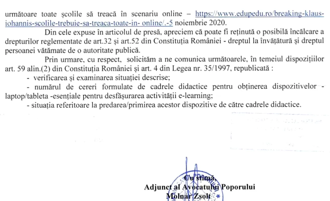 Avocatul Poporului cere Ministerului Educației să redeschidă școlile! (DOCUMENT) / Foto: edupedu.ro