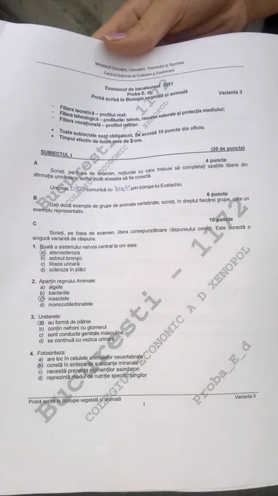 BAC 2012 SESIUNEA TOAMNĂ. SUBIECTE BIOLOGIE, sesiunea august-septembrie 2011