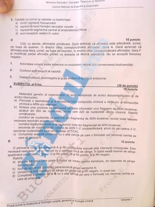 BAC 2012 SESIUNEA TOAMNĂ. SUBIECTE BIOLOGIE, sesiunea iunie-iulie 2012