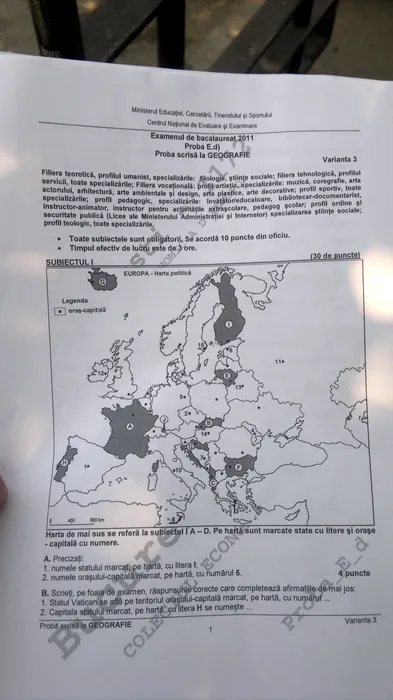 BAC 2012 SESIUNEA TOAMNĂ. SUBIECTE GEOGRAFIE, sesiunea august-septembrie 2011