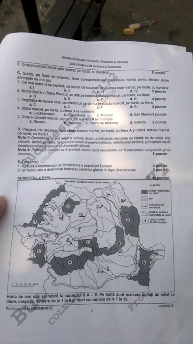 BAC 2012 SESIUNEA TOAMNĂ. SUBIECTE GEOGRAFIE, sesiunea august-septembrie 2011