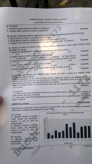 BAC 2012 SESIUNEA TOAMNĂ. SUBIECTE GEOGRAFIE, sesiunea august-septembrie 2011