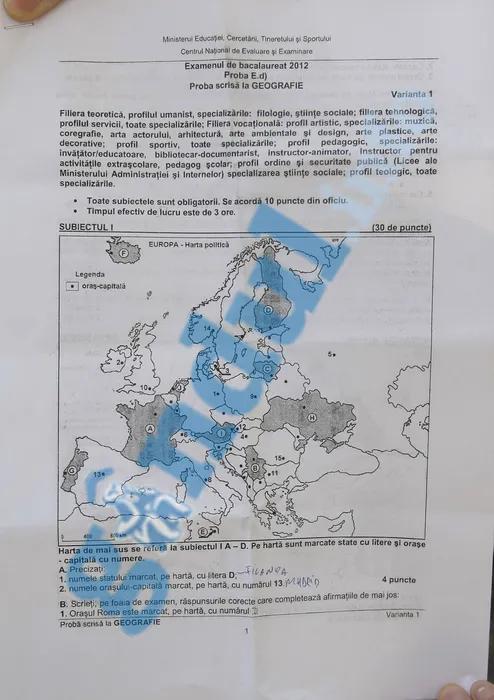 BAC 2012 SESIUNEA TOAMNĂ. SUBIECTE GEOGRAFIE, sesiunea iunie-iulie 2012