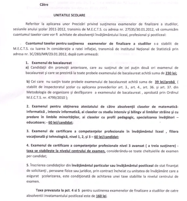BAC 2012. Taxele pentru cei care nu au fost admiși în două sesiuni