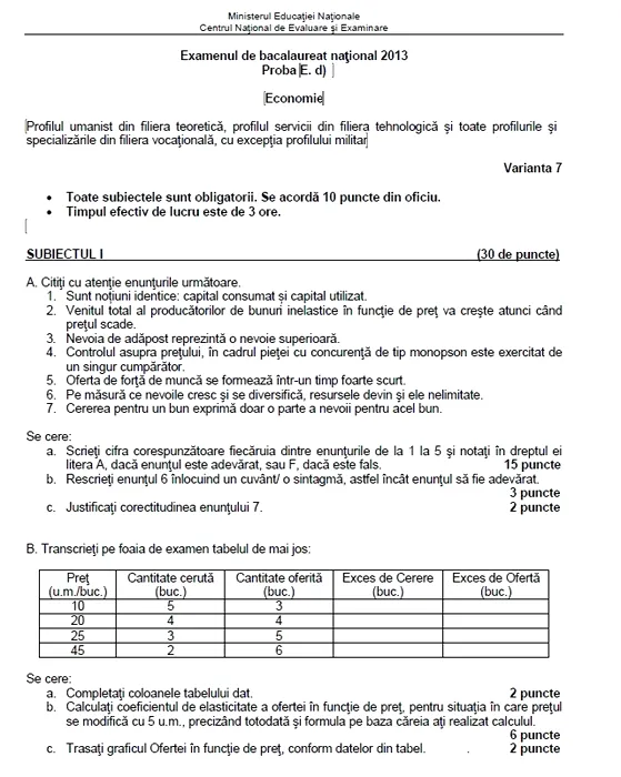 BAC 2013. Ce subiecte au primit elevii la ECONOMIE la BACALAUREAT 2013