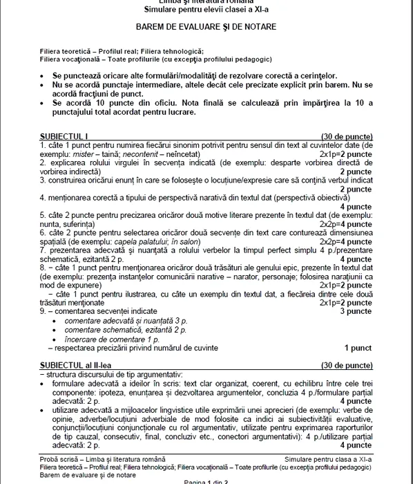 BAC 2014 BAREM ROMÂNĂ – Subiecte și barem simulare română la BACALAUREAT 2014, clasa a XI-a