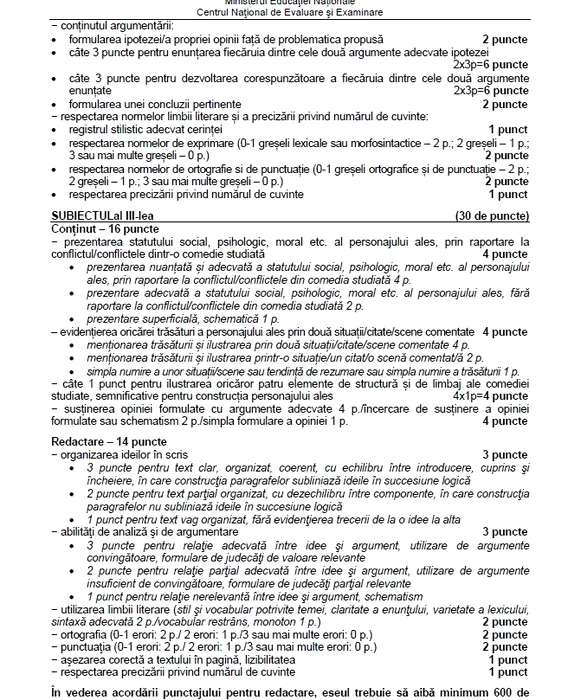 BAC 2014 BAREM ROMÂNĂ – Subiecte și barem simulare română la BACALAUREAT 2014, clasa a XI-a