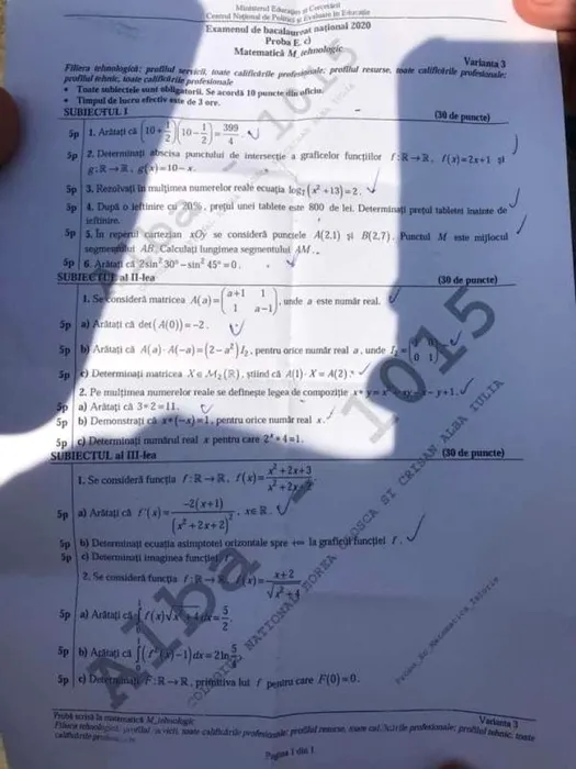 Subiectele primite de elevii care au absolvit profilul Tehnologic