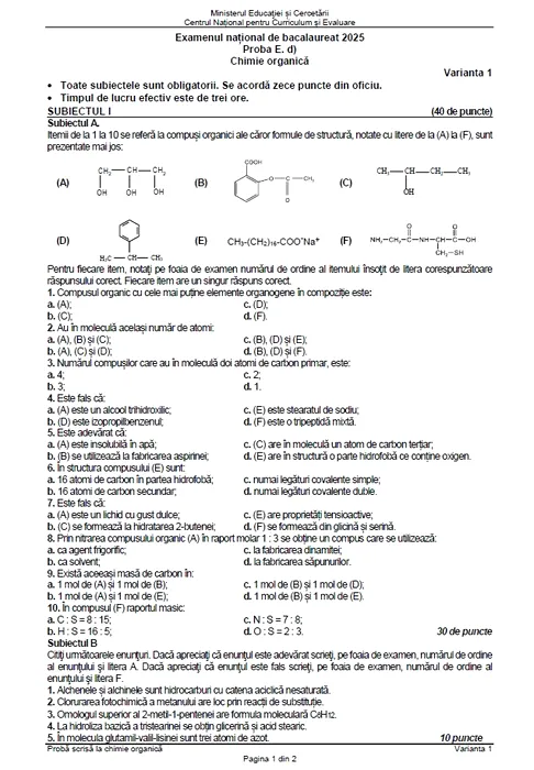 Subiectele la chimie organică, pag. 1/2