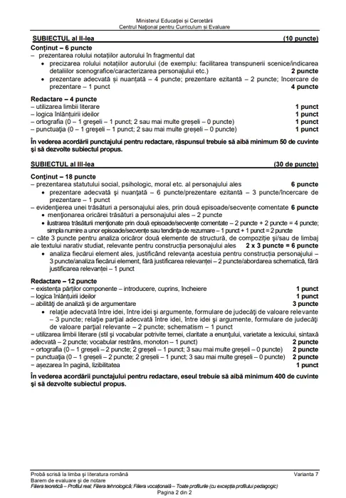 Barem de corectare pentru proba scrisă la Limba și Literatura Română - profil Real-Tehnologic pag. 2/2