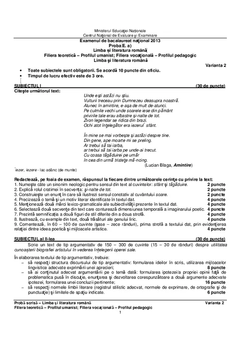 BACALAUREAT 2013. Mihai Eminescu și romanul psihologic la proba scrisă de română din cadrul BAC 2013, sesiunea pentru olimpici