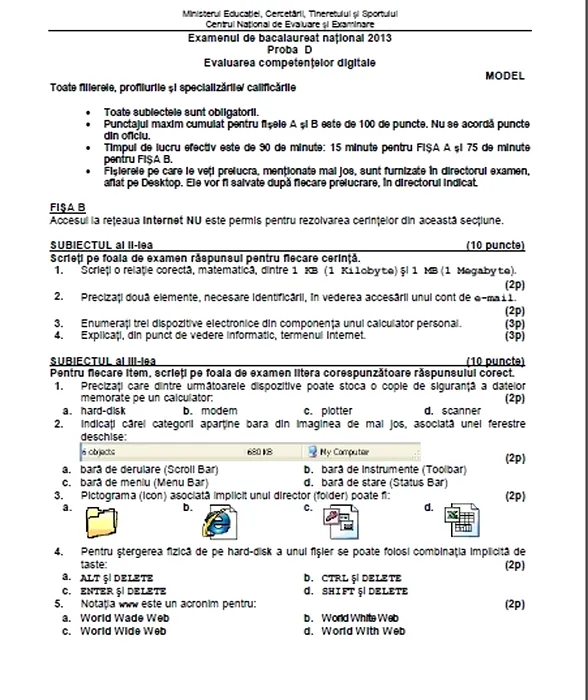 BACALAUREAT 2013. Proba de competențe digitale. Câteva exemple de SUBIECTE pe care le pot primi elevii