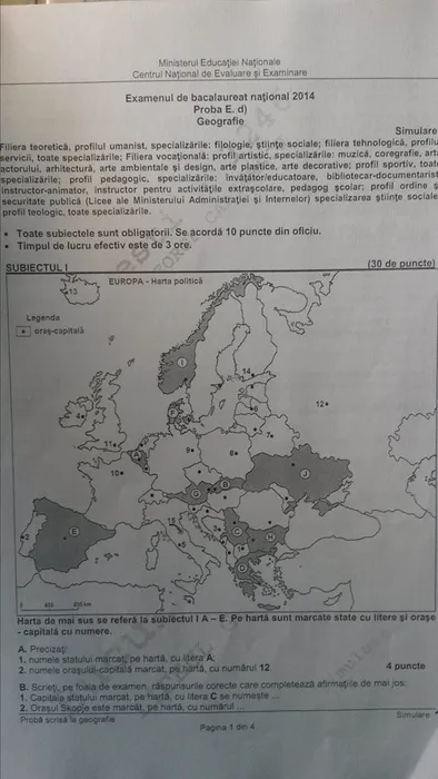 BACALAUREAT 2014. Subiecte date azi la GEOGRAFIE – simulare clasa a XII-a