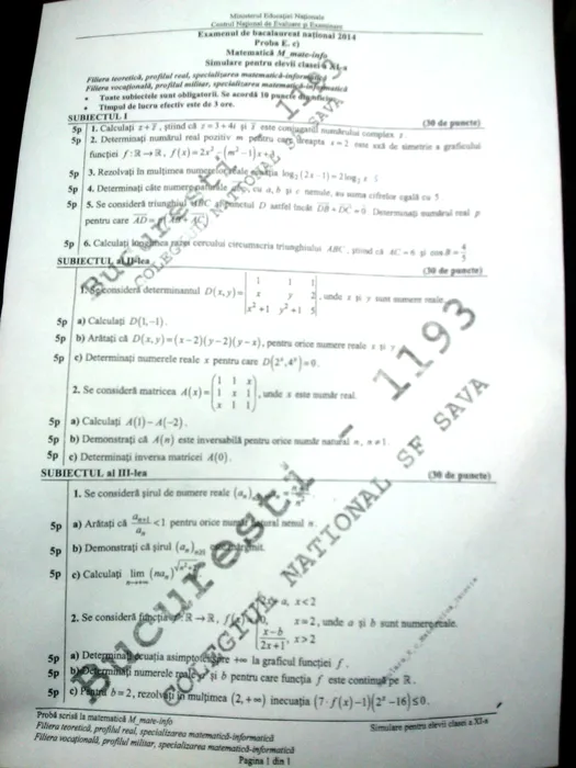 BACALAUREAT 2014. Subiecte date azi la MATEMATICĂ, simulare clasa a XII-a – Toate profilurile